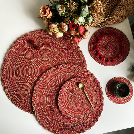 Imitation cotton yarn dining mat ins Fried Dough Twists braid woven heat insulation mat semi manual round cup mat ramie mat